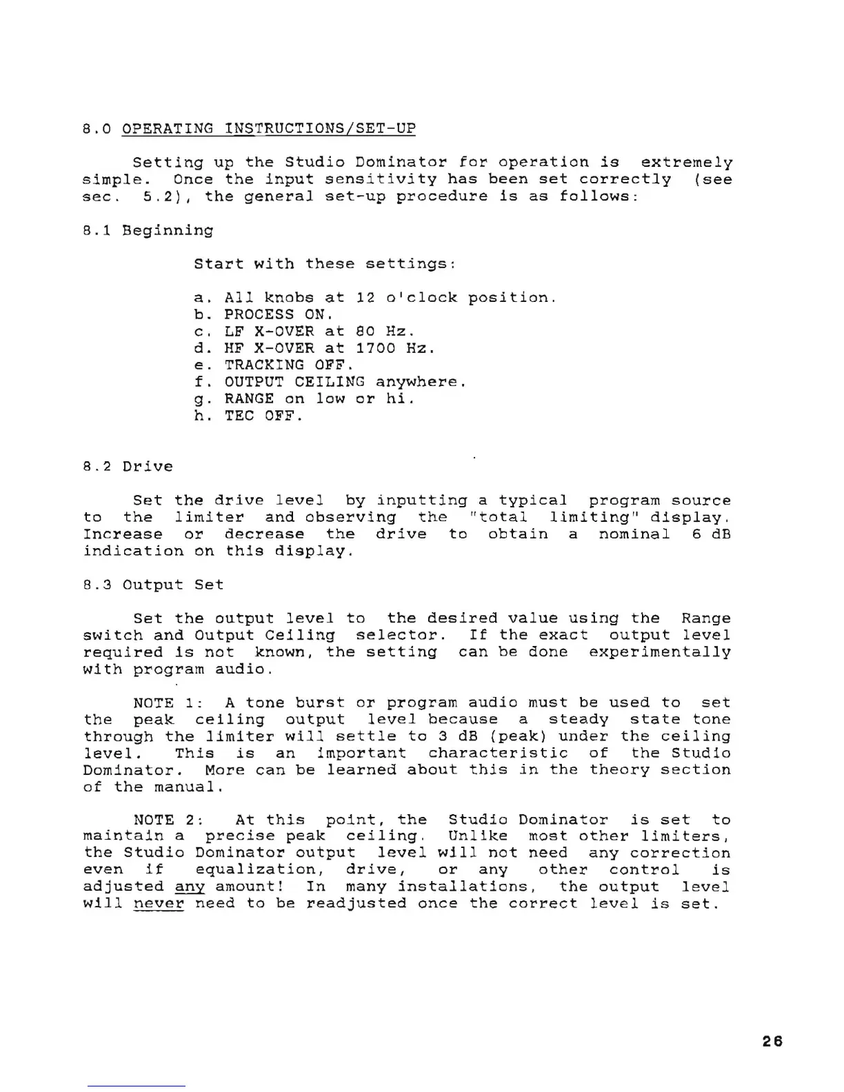 Aphex Studio Dominator 700 - Operating Instructions;Set-Up; Beginning; Drive; Output Set