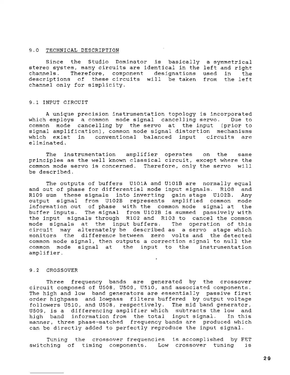 Aphex Studio Dominator 700 - Technical Description; Input Circuit; Crossover