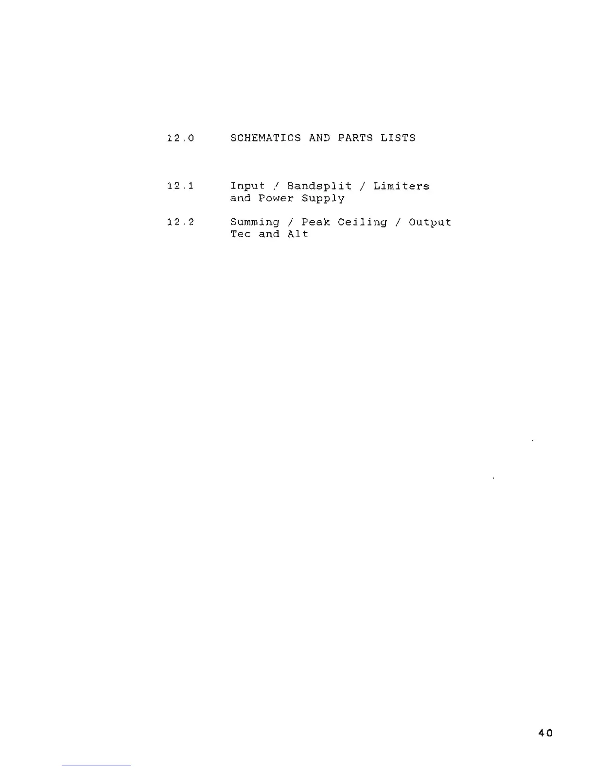 Aphex Studio Dominator 700 - 12 SCHEMATICS and PARTS LISTS; Input;Bandsplit;L1 Miters and Power Supply
