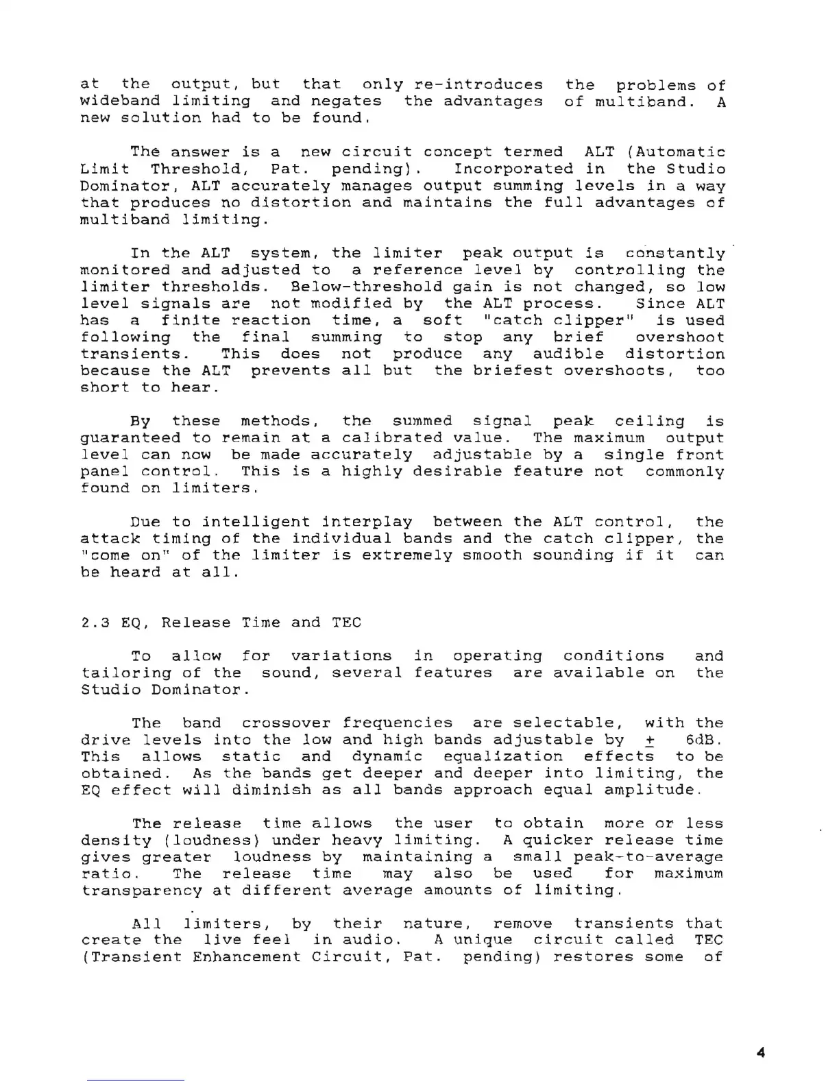 Aphex Studio Dominator 700 - EQ, Release Time and TEC