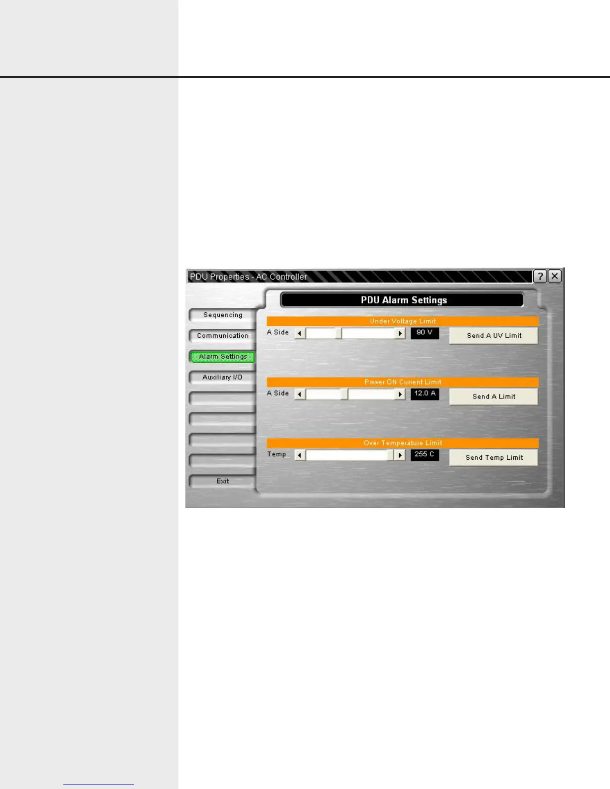 After the value is chosen, the user must send the setting to the PDU by clicking on the