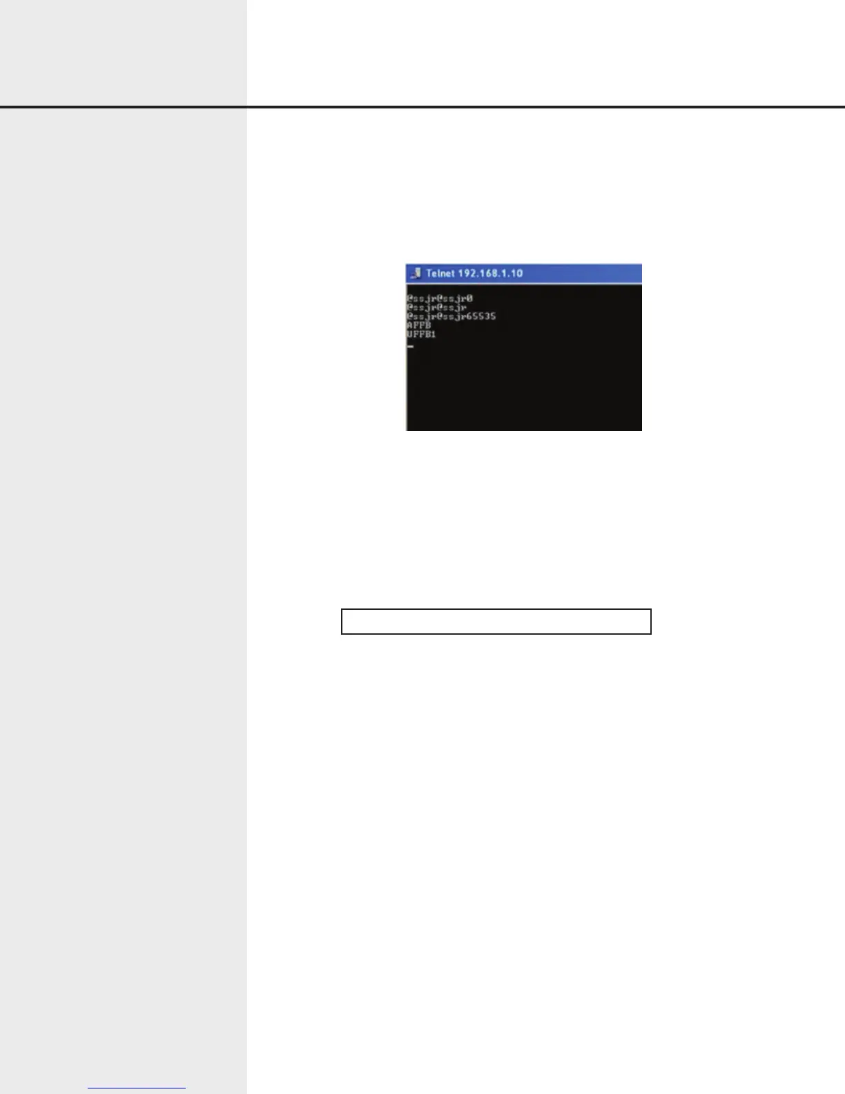 dress is 192.168.1.10 so the command should look like “telnet 192.168.1.10 9999”. This