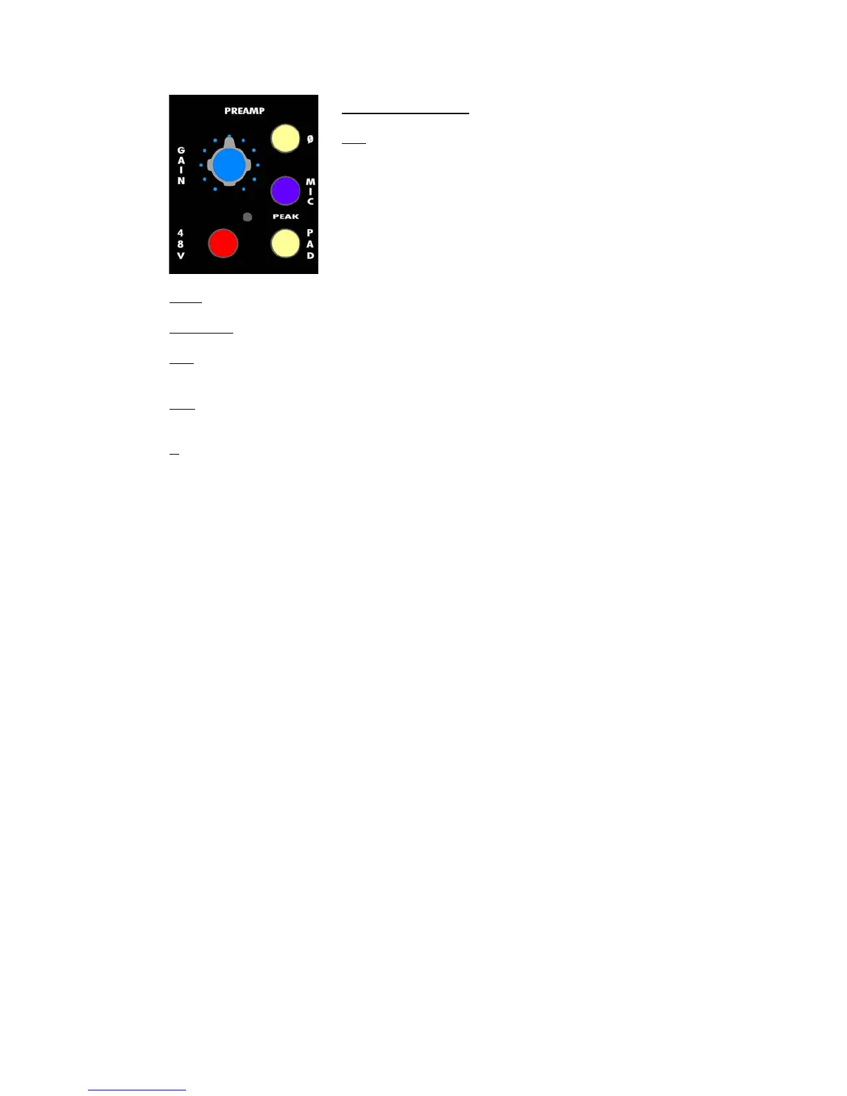 GAIN: Provides up to +65dB of gain for the Microphone and +45dB for the Instrument Inputs