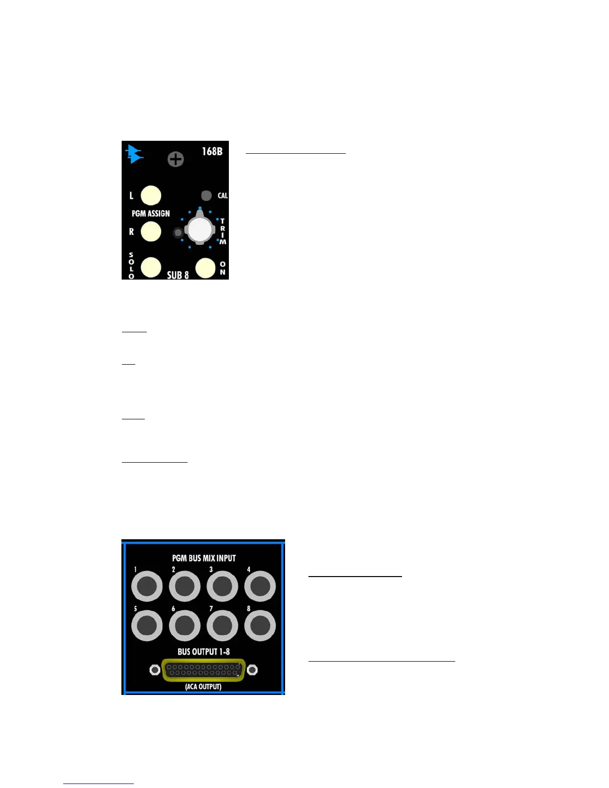 outputs are fed to the BUS OUTPUT 1-8 (ACA OUTPUT) sub-D connector on the rear panel. The