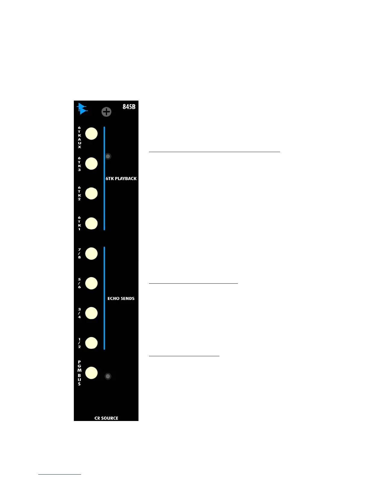 6 TRK PLAYBACK 6TKAUX, 6TK1, 6TK2, 6TK3: Routes the signal