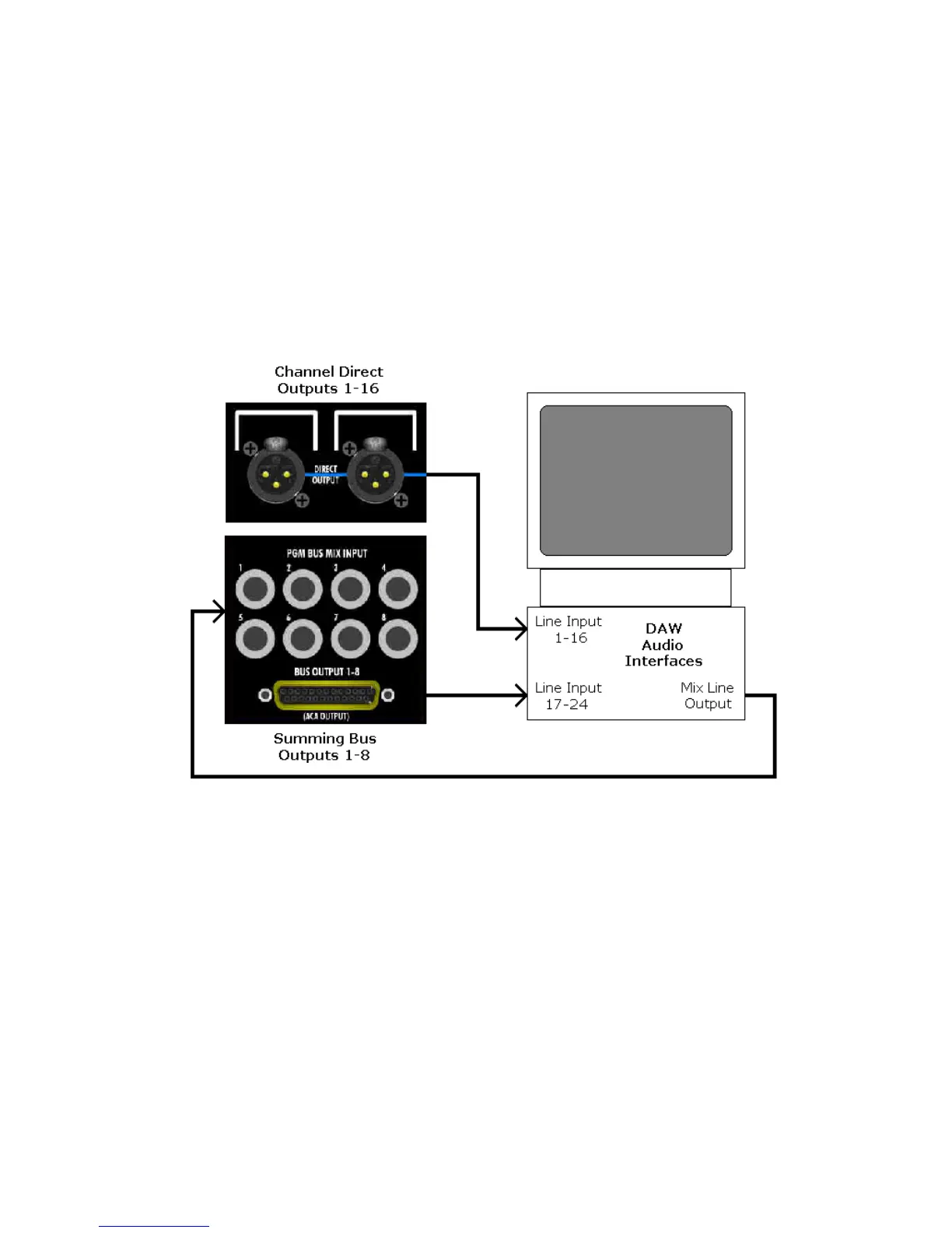 Direct Outputs. DAW inputs 17-24 are fed from the 1608 Summing Bus Outputs 1-8, providing