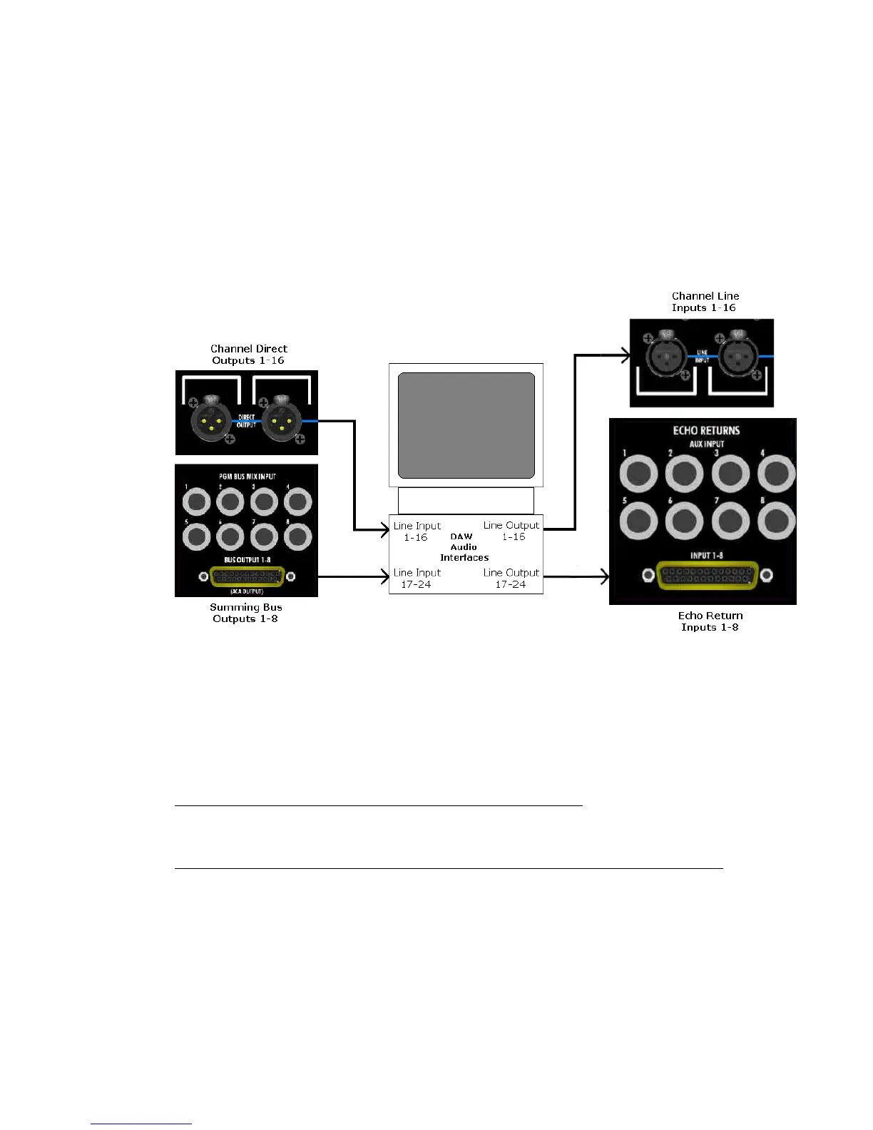 DAW and the Echo Returns as multitrack returns (or vice-versa). This might require sub-