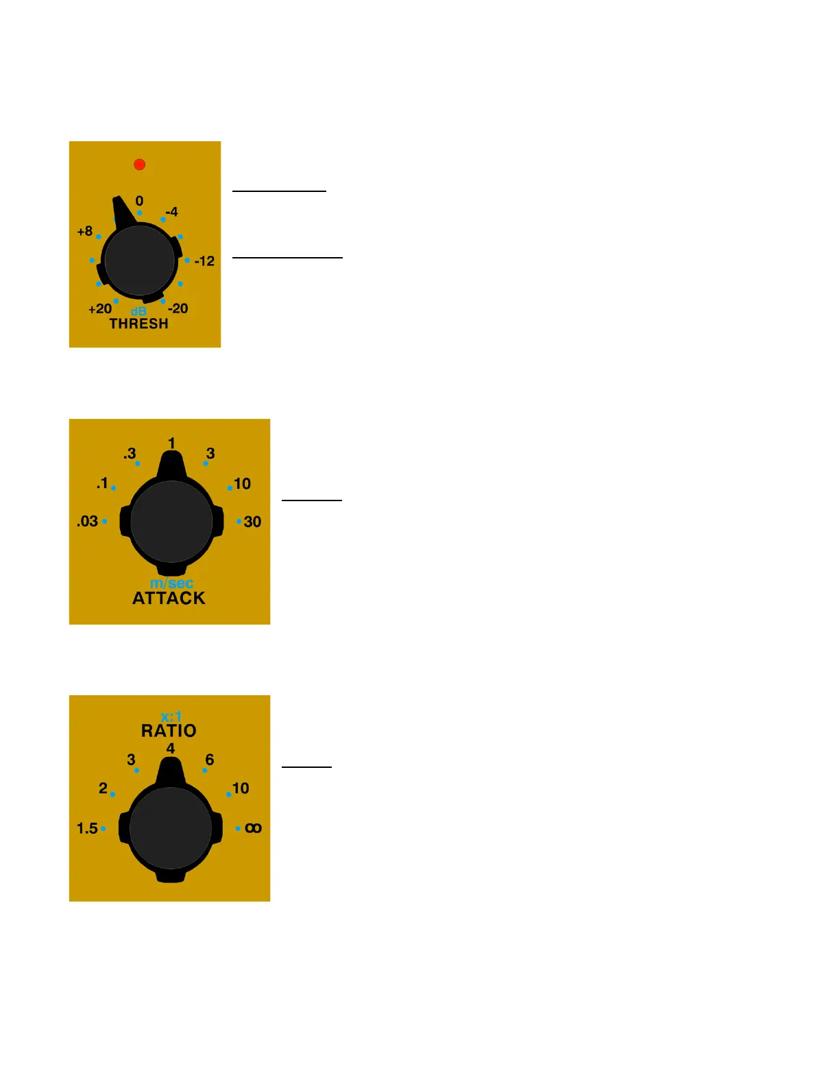 RATIO: Sets the ratio of input vs. output levels for signals that fall