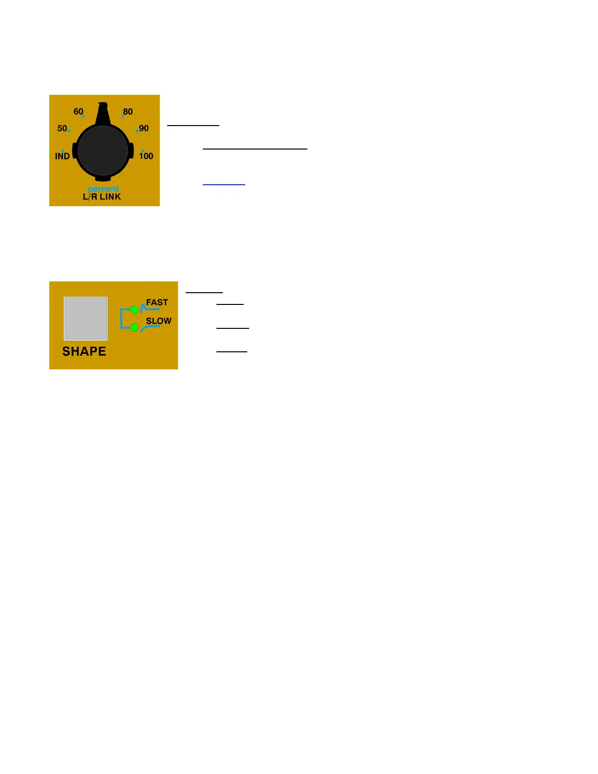 The speed of the control voltage link between the Left and Right channels is selected using the SHAPE
