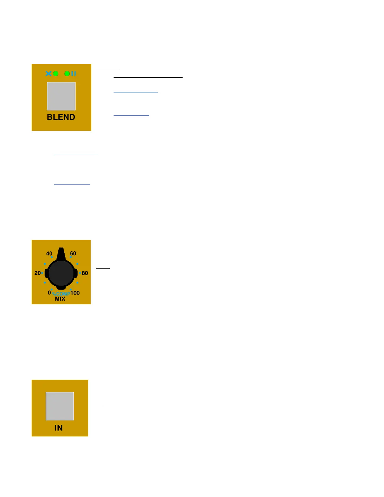 • X (Crossfade): The MIX pot sets crossfade percentage between input and