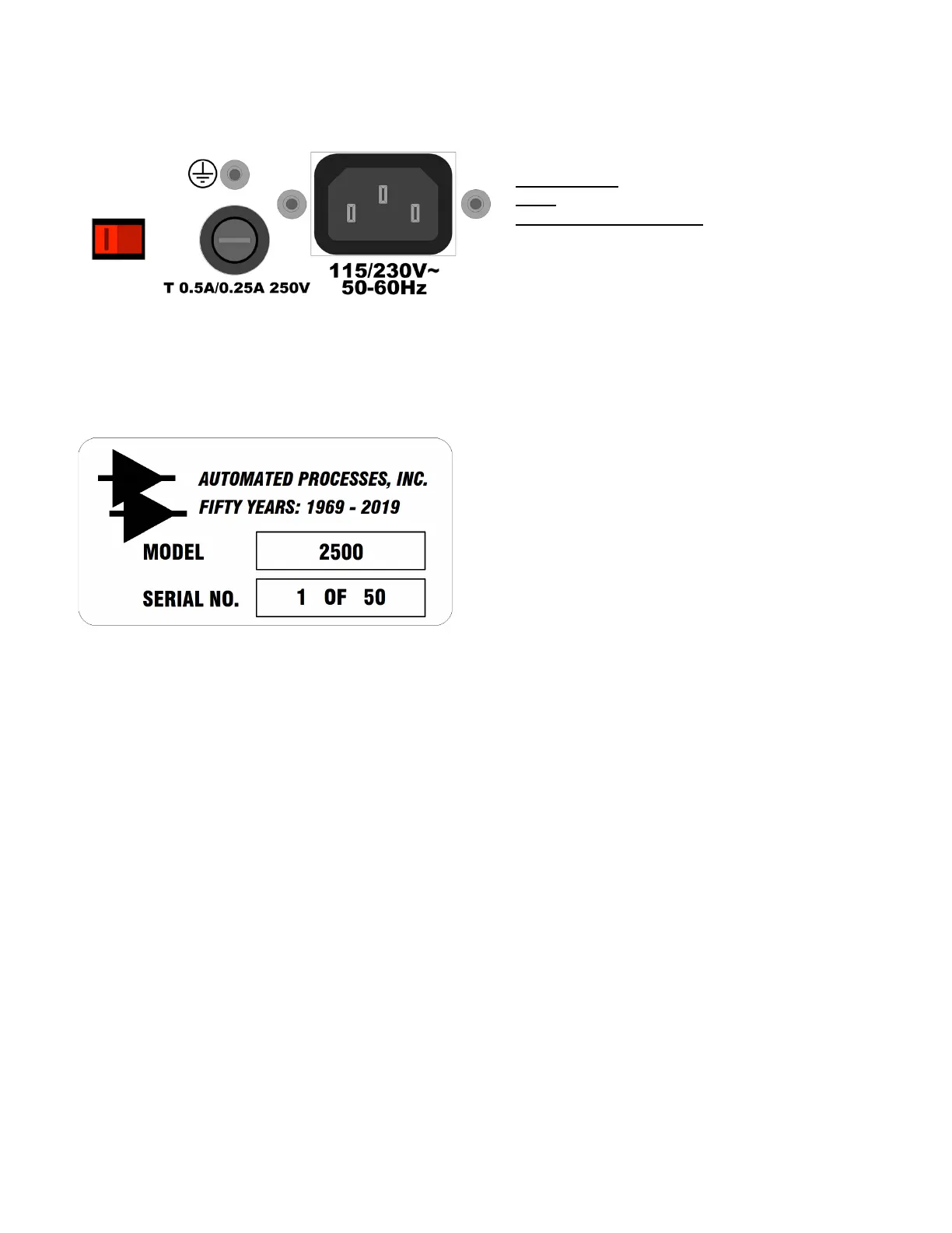 The AC power connection, fuse, and voltage selection switch is located on the rear panel of the 2500.