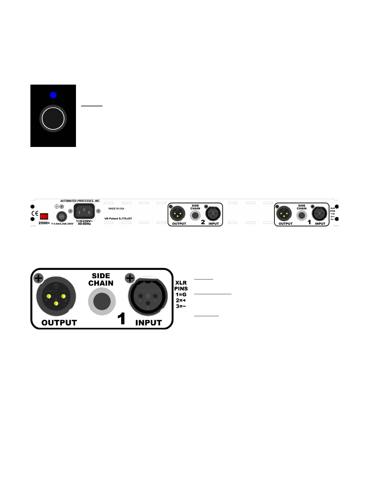Each audio channel, Left and Right, has an INPUT, OUTPUT, and SIDE CHAIN input connection.