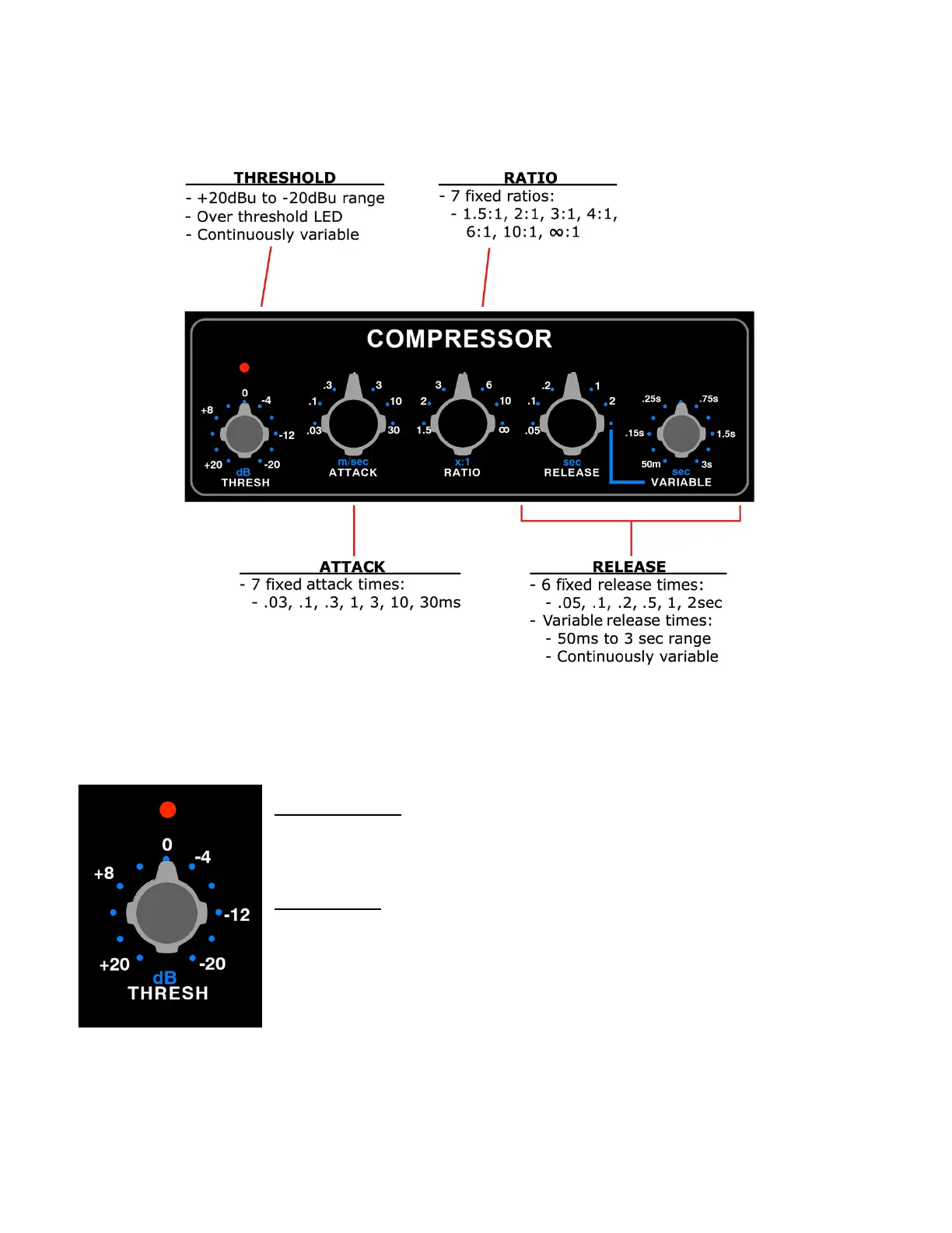The COMPRESSOR section of the 2500+ sets the basic compression parameters for both the Left and