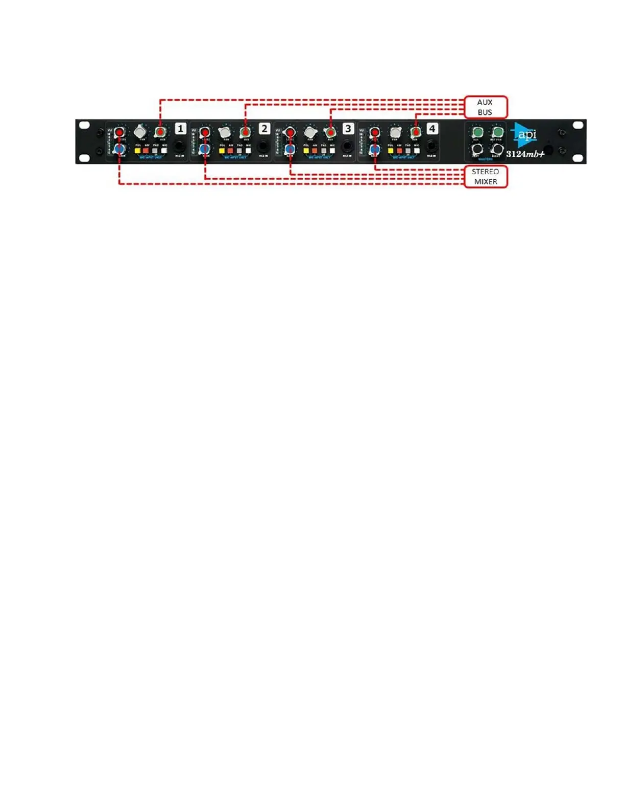 AUXILIARY functions are controlled from the 3124mb+ front panel. Each chan nel has its