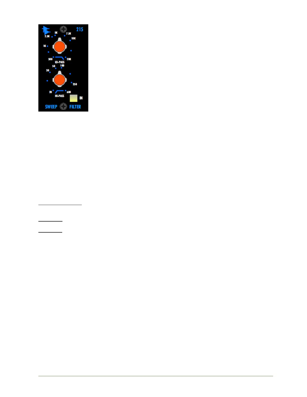 The controls for the 215 High-pass, Low-pass Sweep Filter function as follows: