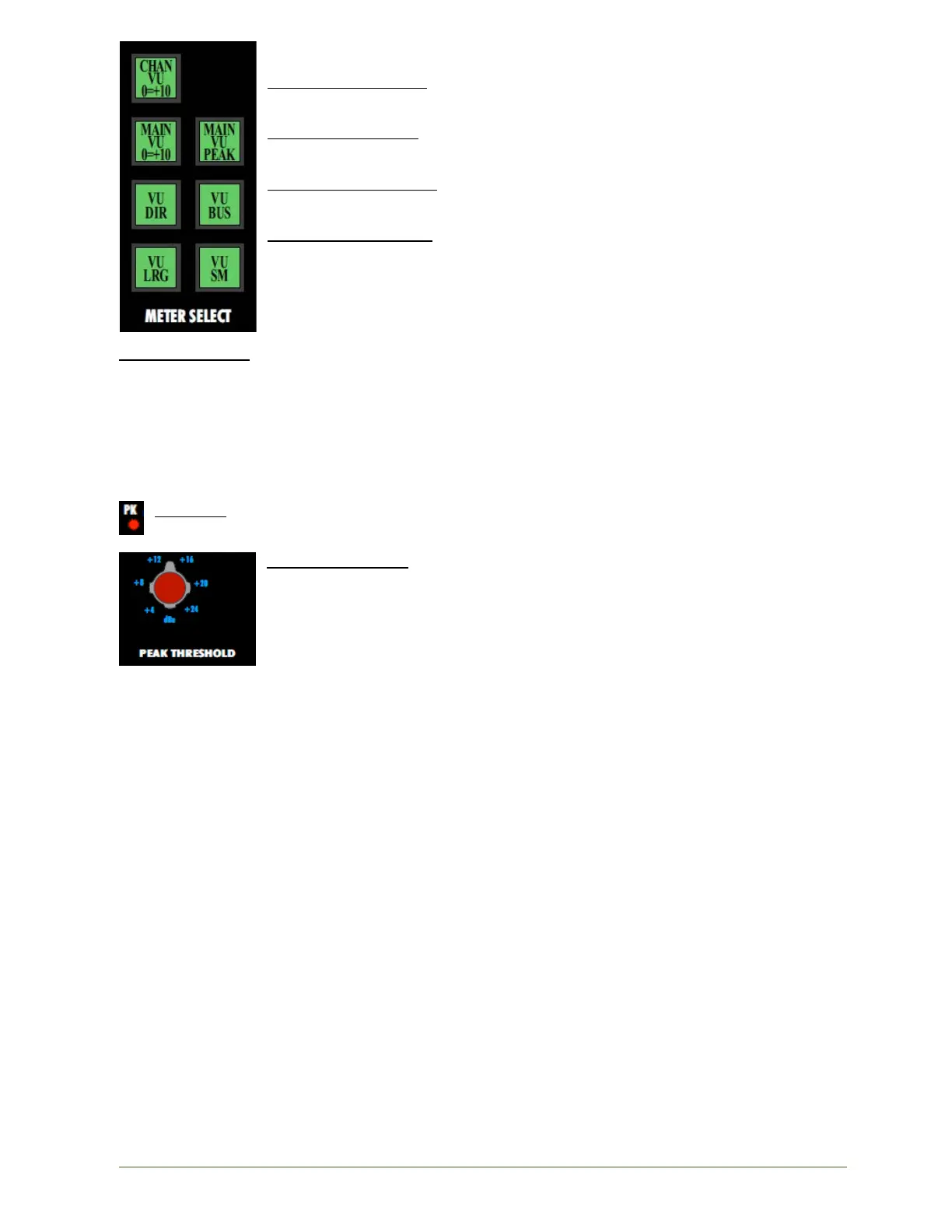 PEAK THRESHOLD: Sets the peak reference level for the channel Peak Indicators