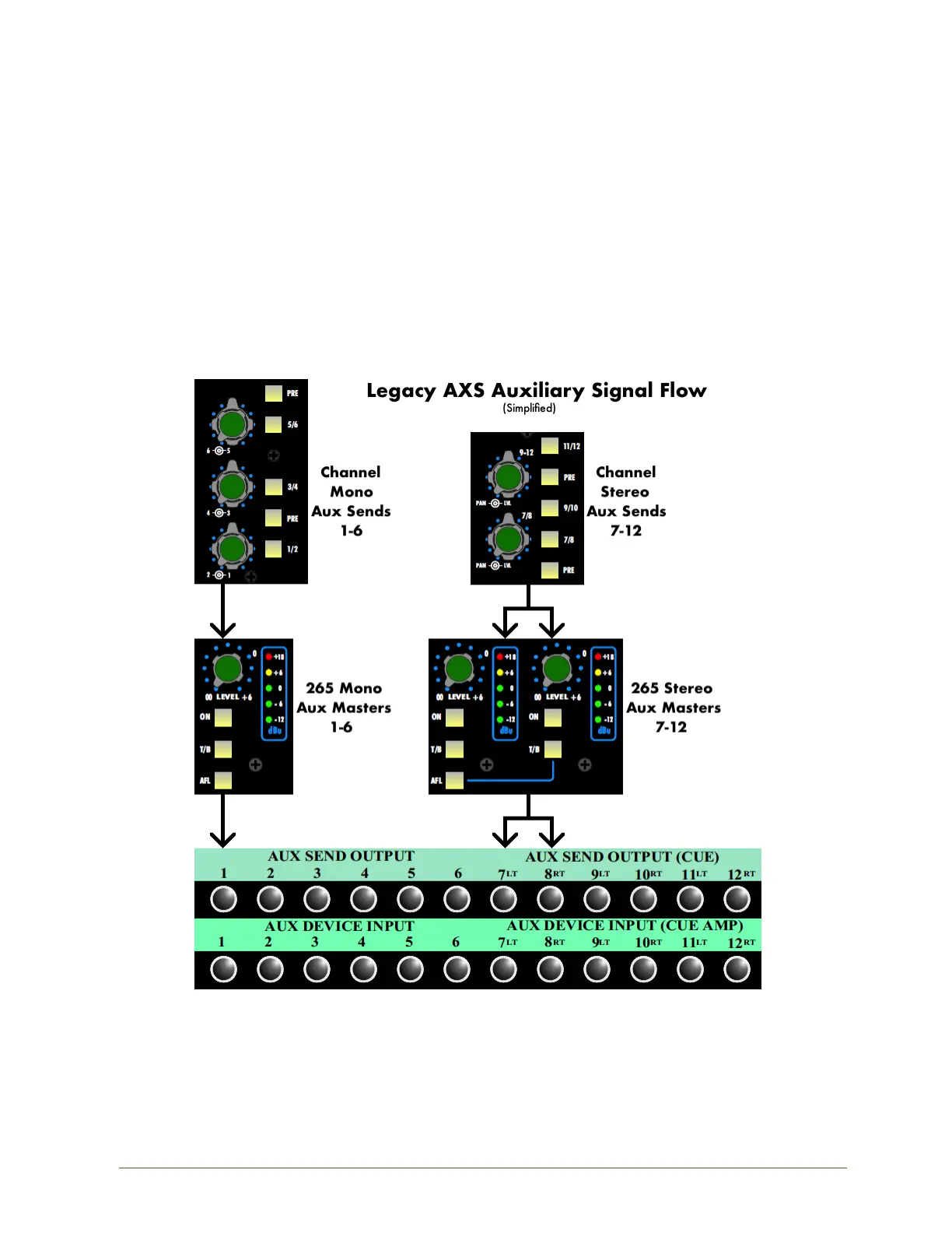 The Legacy AXS console provides a powerful Auxiliary Send system with a variety of options for