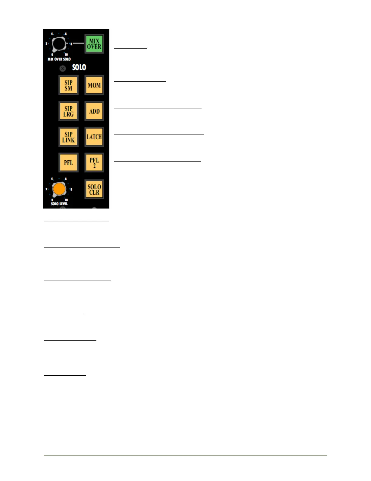 SOLO CLR (Solo Clear): Disengages all active channel SOLOs