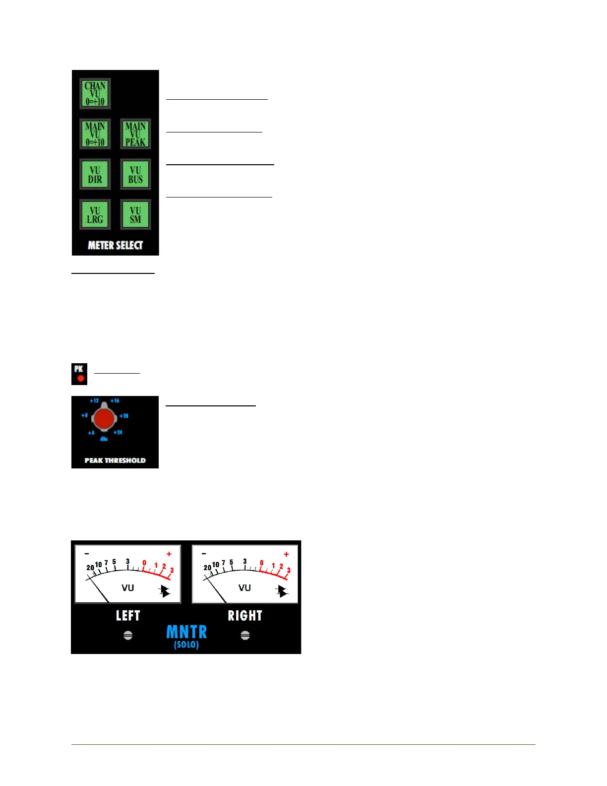PEAK THRESHOLD: Sets the peak reference level for the channel Peak Indicators