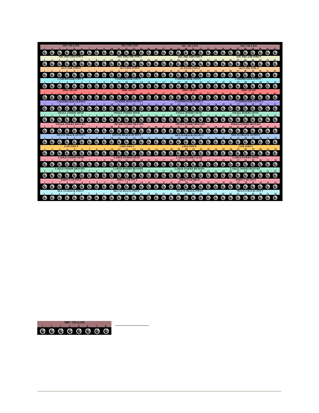 the bay. In the interest of space, patch points for only 8 channels are shown below.