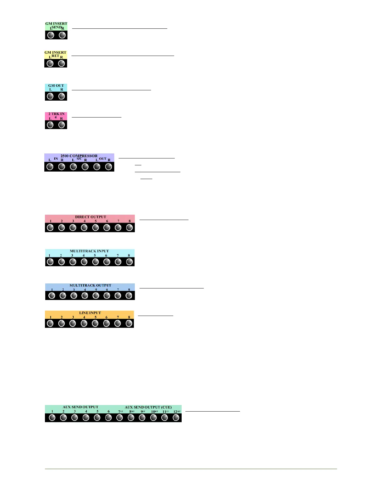 API Legacy AXS - 2500 C Stereo Bus Compressor Patch Points; Multitrack Patch Points; Auxiliary Master Patch Points