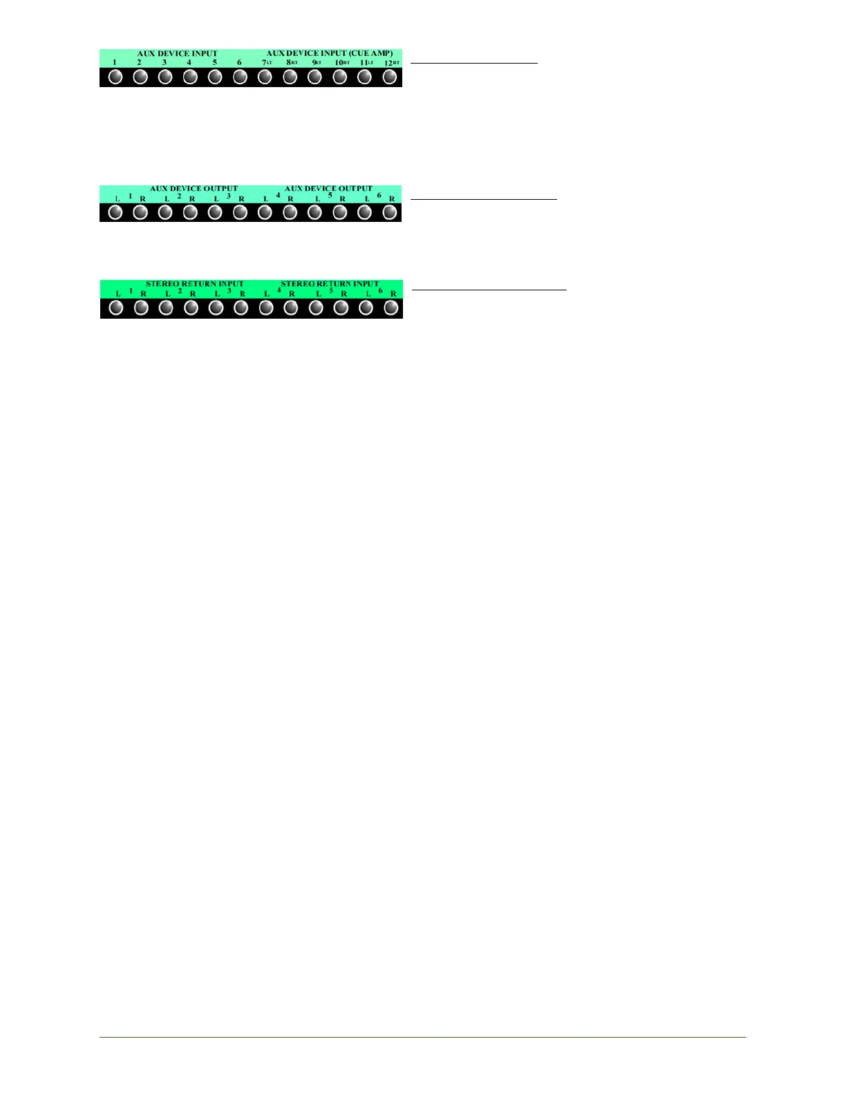 and AUX DEVICE OUTPUT patch points to. The AUX DEVICE INPUT (CUE AMP) patch points are half-