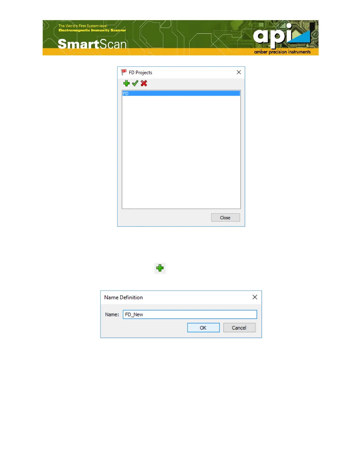 API SmartScan 350 - Figure 39: FD Project Window; Figure 40: Define the Name of FD Project