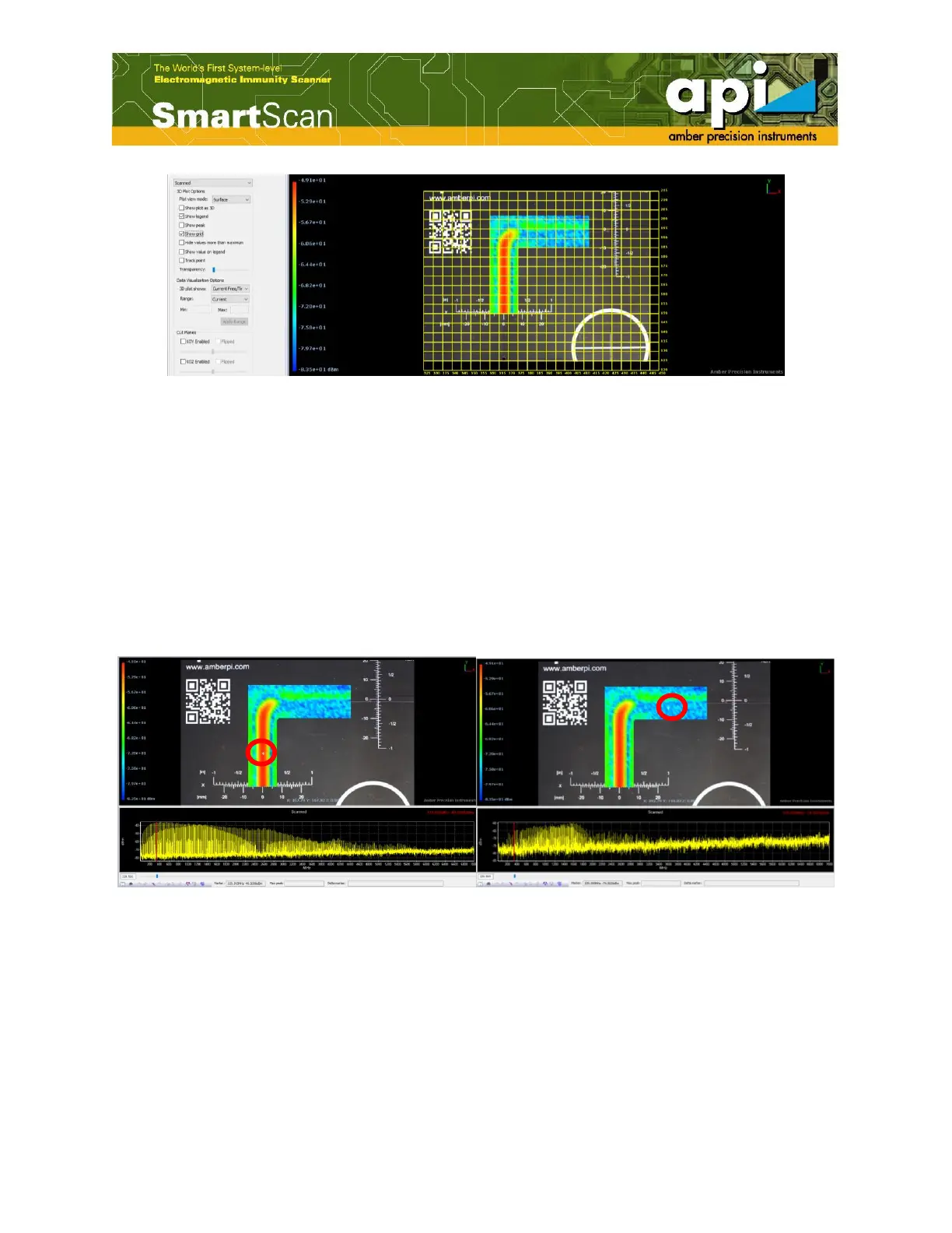 placing the mouse pointer above scanned points, the graph below the color map updates each