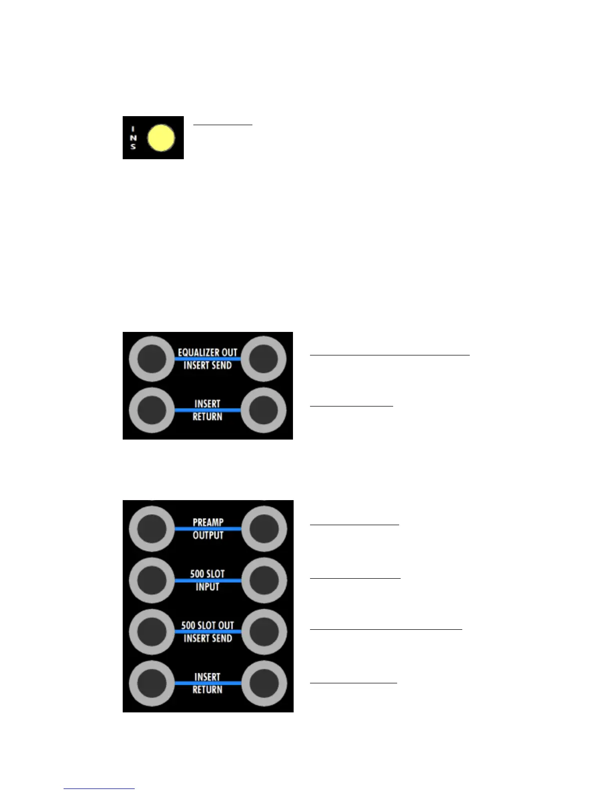 The insert return is located post-EQ (pre-fader) and is routed to the signal path only