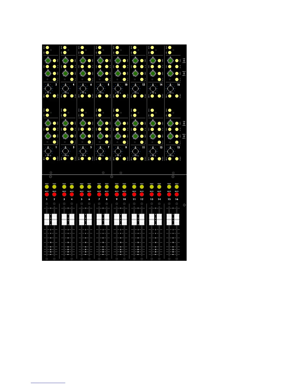 each pair of channels are situated side-by-side below the 2-channel strip. Each 2-channel