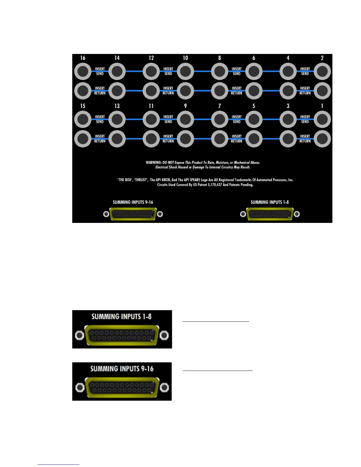 SUMMING INPUTS 9-16: DB-25, balanced, low-