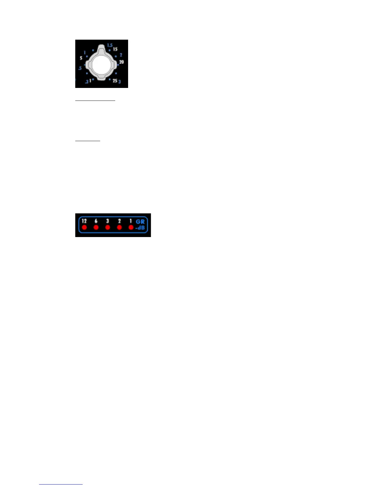 RELEASE: Sets the time it takes the compressor to recover to unity gain after the level falls