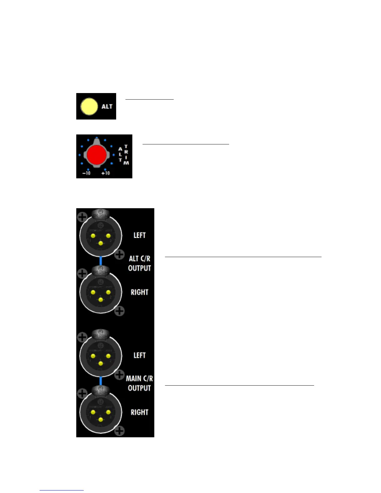ALT C/R OUTPUT (alternate control room outputs): 3-pin