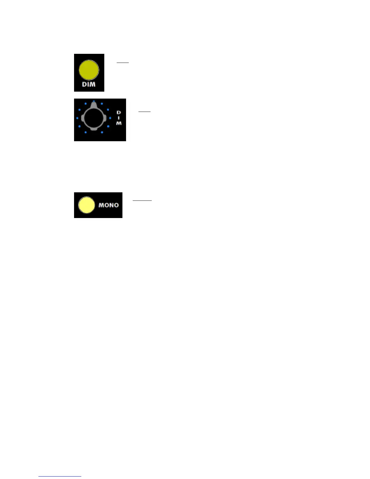 DIM: Activates the control room loudspeaker DIM function when engaged