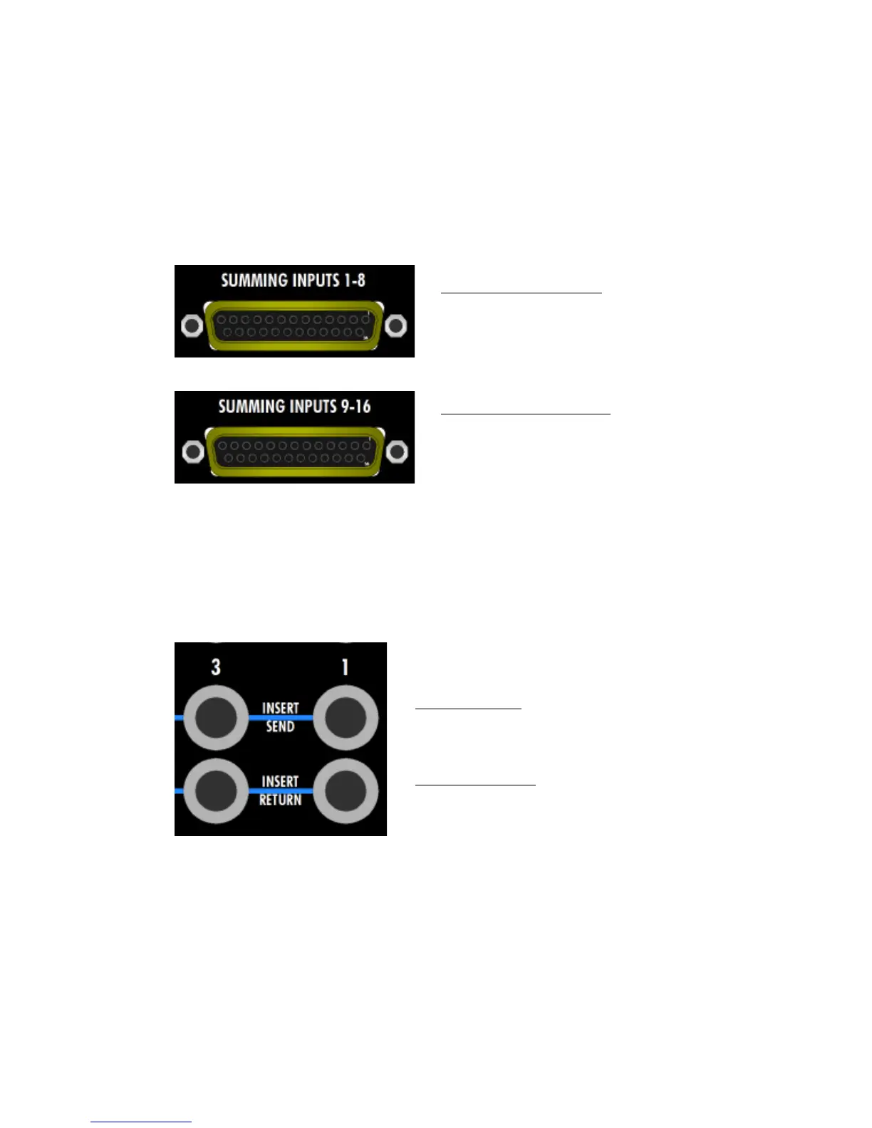 SUMMING INPUTS 9-16: DB-25, balanced, low-