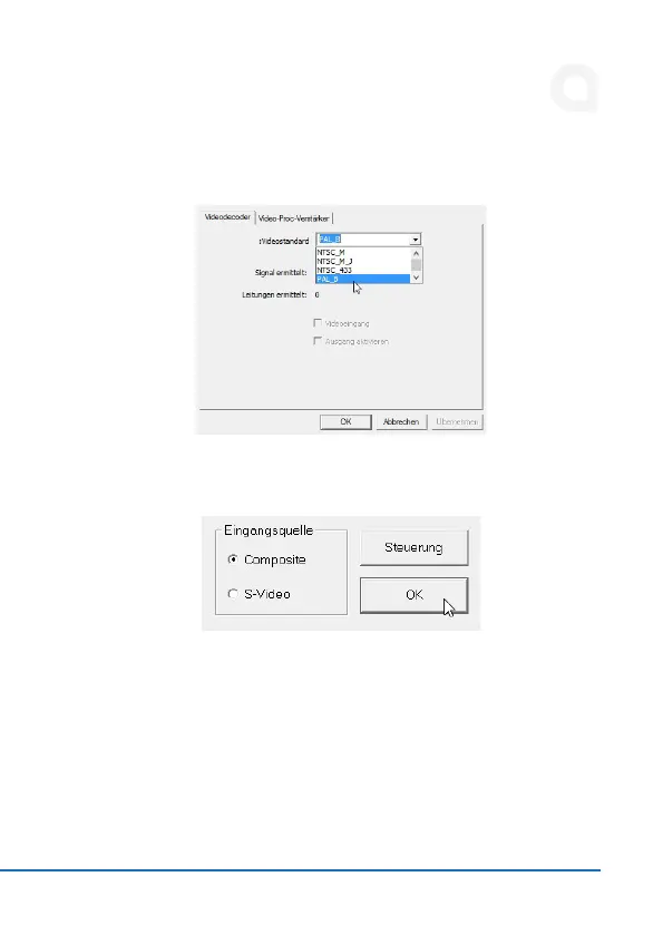 Enter the video standard of your input device. The PAL_B standard is most com-