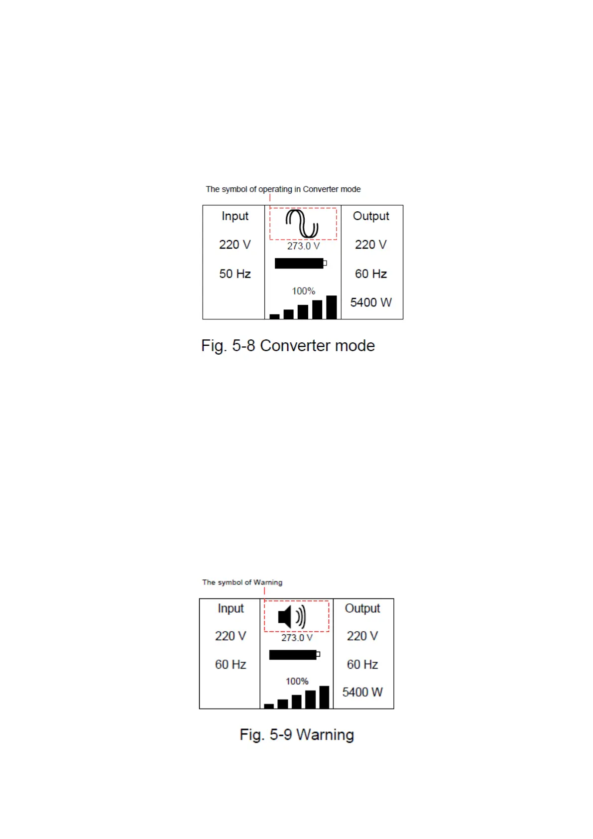 In converter mode, the UPS would free run with fixed output frequency(50Hz or 60Hz). Once