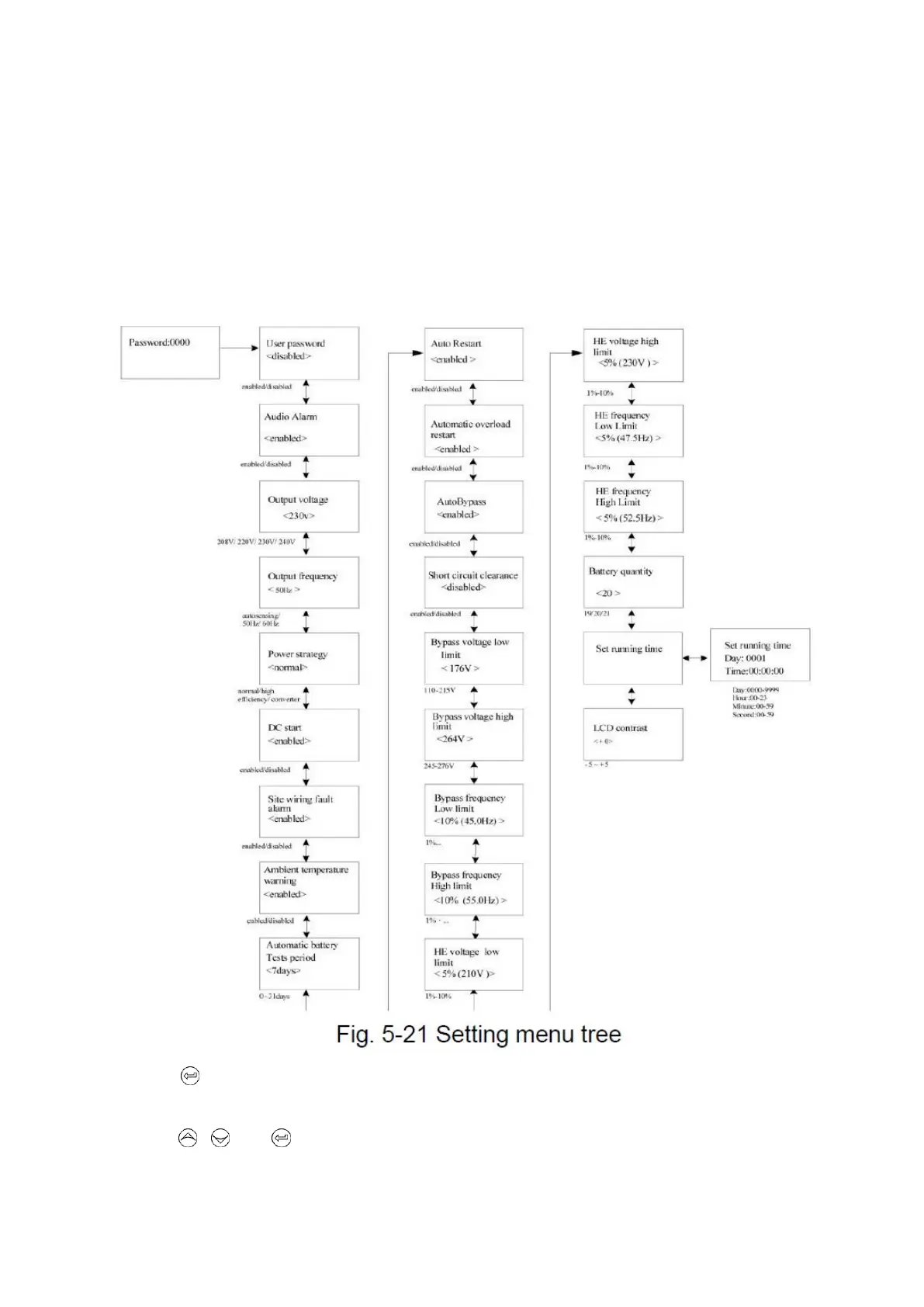 The most of settings could only be done while UPS is in Bypass mode.