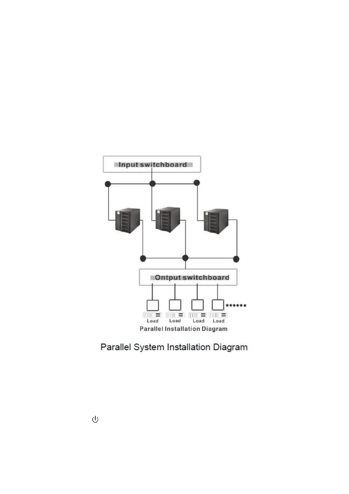10) Do not switch on the output breakerof each UPS, switchon the input breaker ofthe each