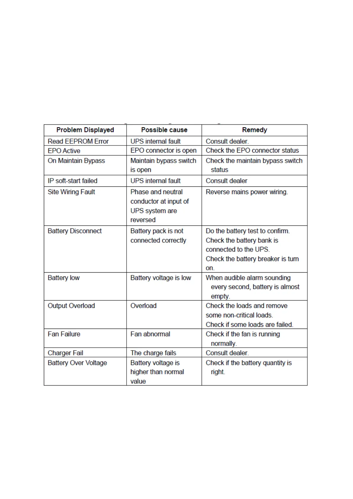 If the UPS system does not operate correctly, first check the operating informationon the LCD