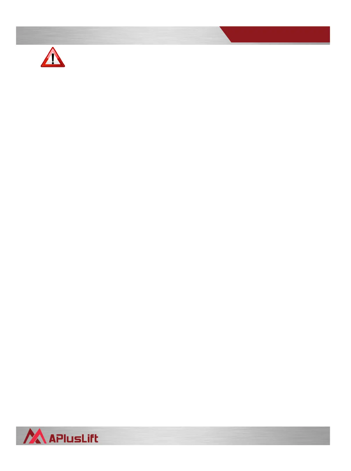 24. Never drive equipment onto or off of the Lift make sure the Lift is fully lowered.