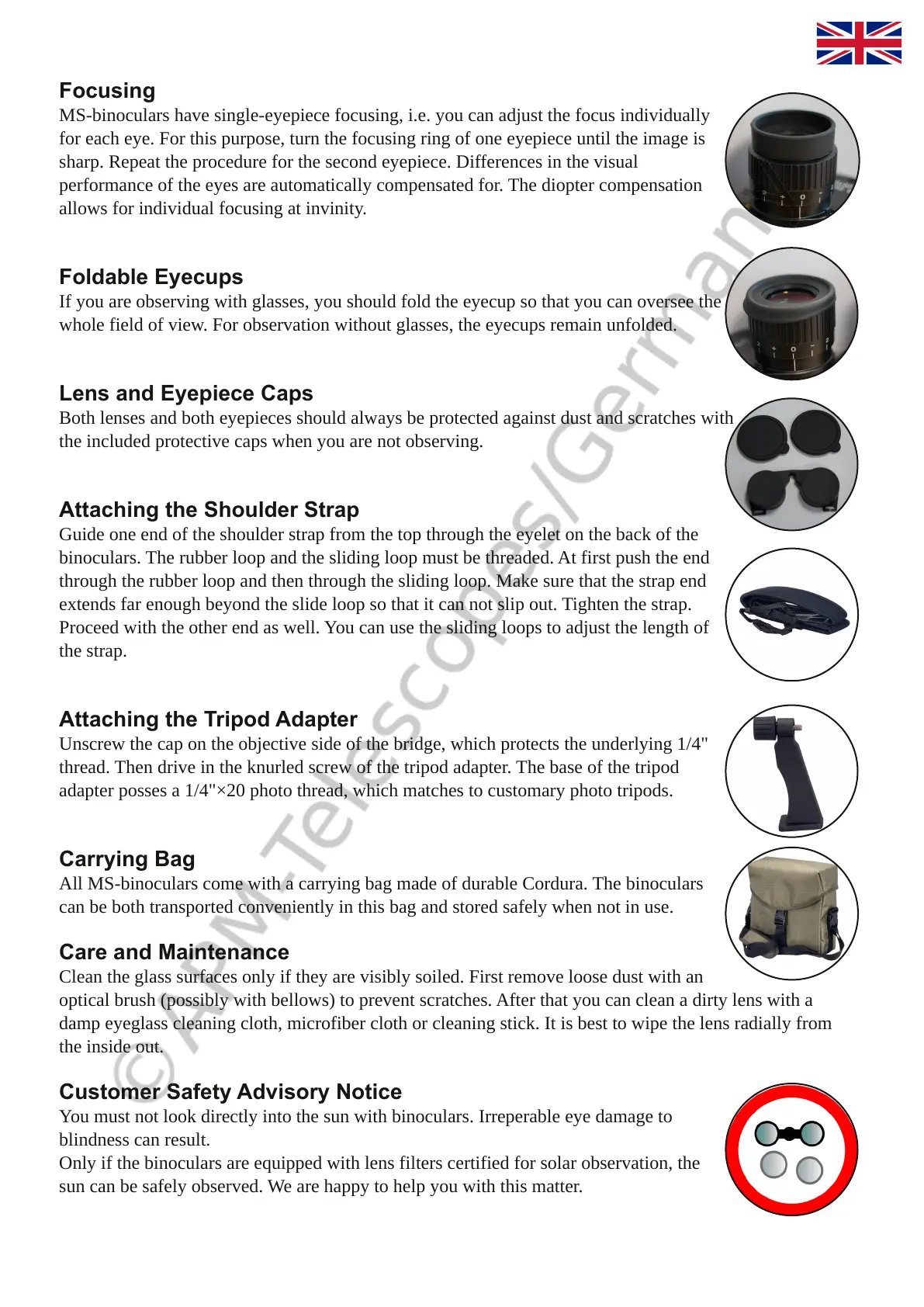 All MS-binoculars come with a carrying bag made of durable Cordura. The binoculars