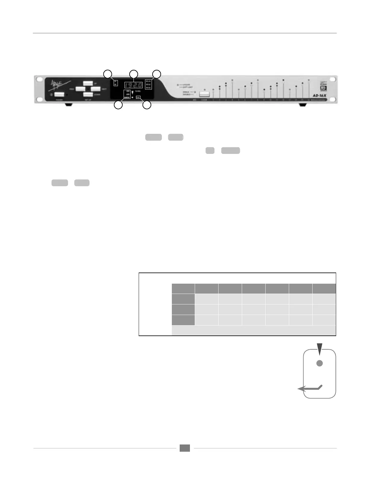 6) Lock indication – These LEDs indicate the Lock status of the AD-16X’s C777 clock. Two levels of lock preci-