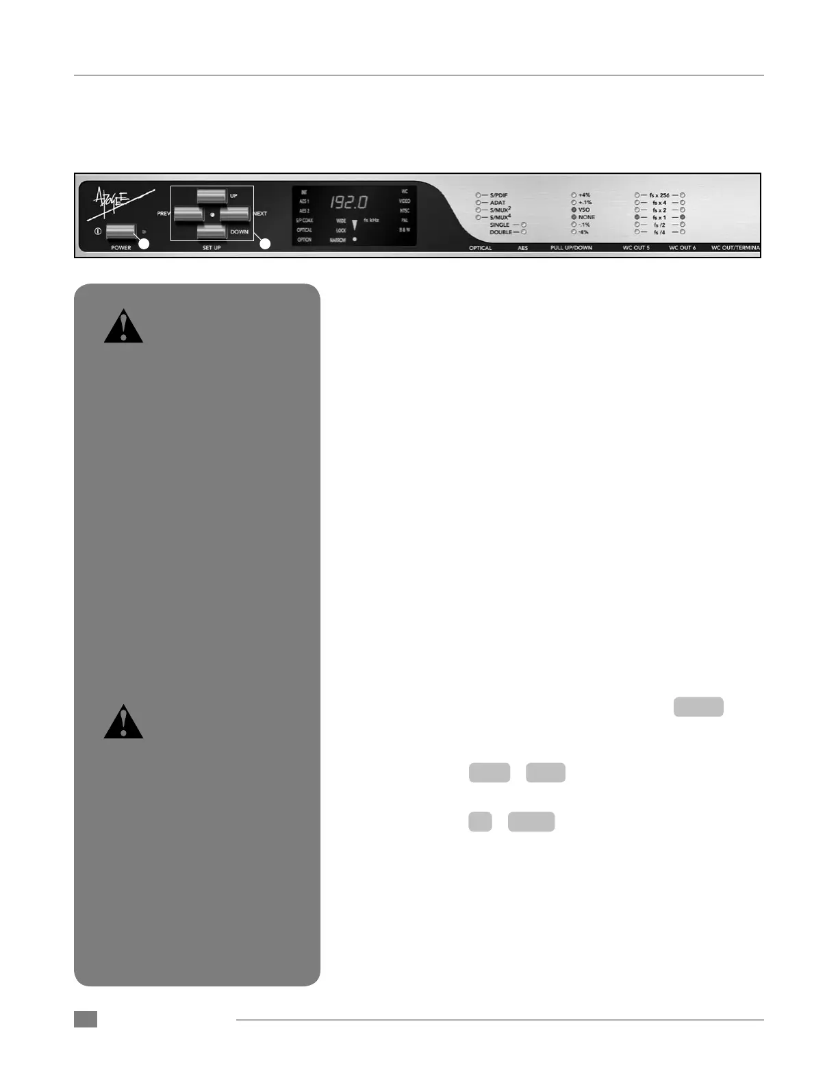 1) Enable Setup mode by simply pressing any of the SETUP but-