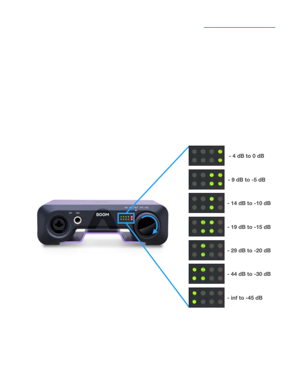as you rotate the knob. This allows you to visualize the current output level setting. The volume