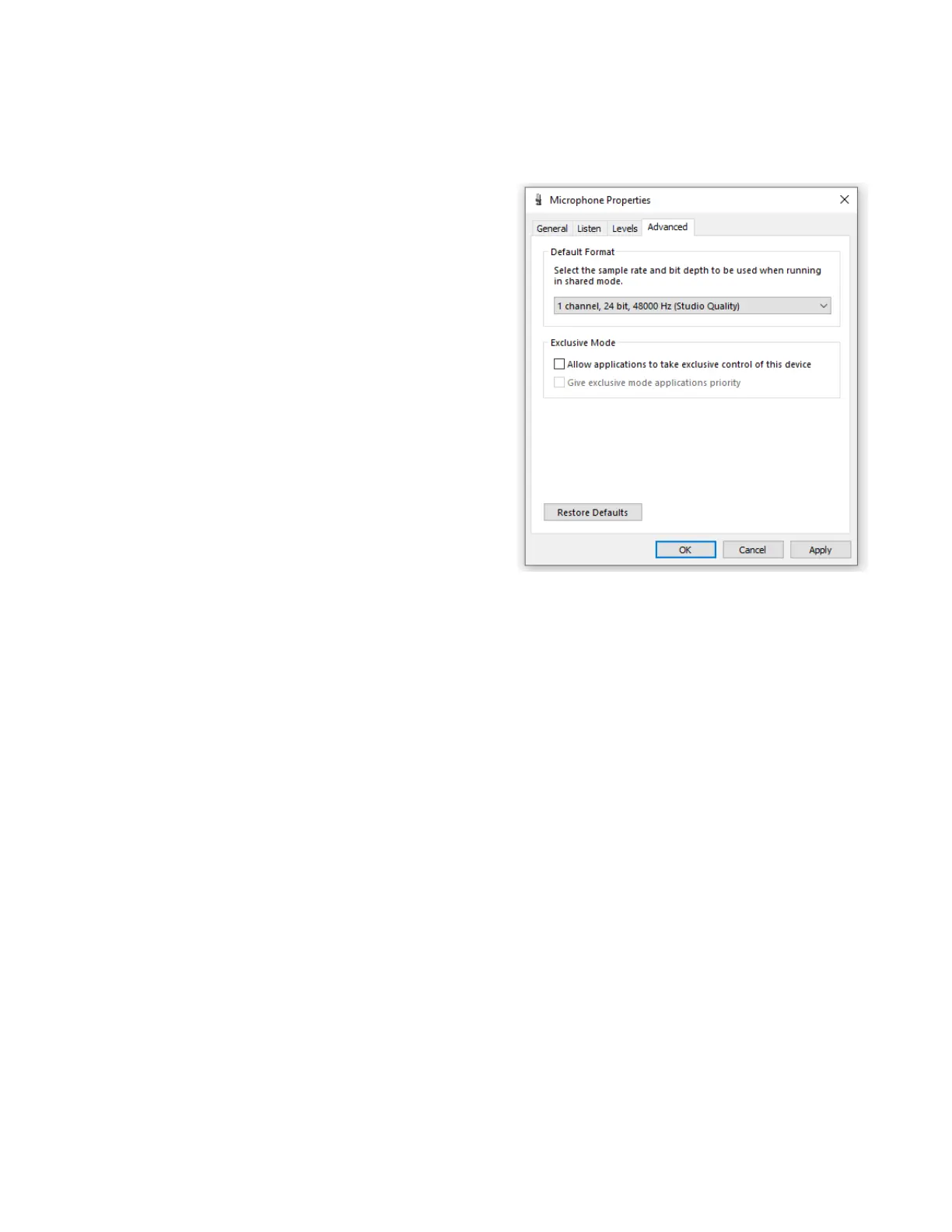 a. From the Microphone Device Properties