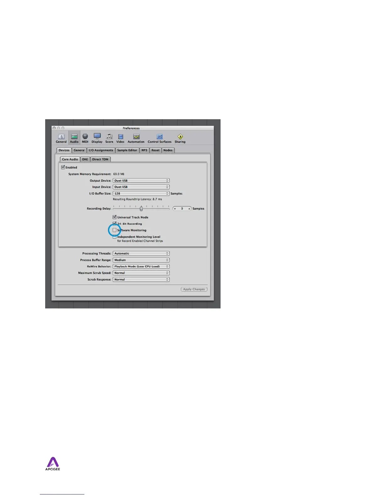 hardware device (Logic Pro menu > Preferences > Audio). Uncheck the Software