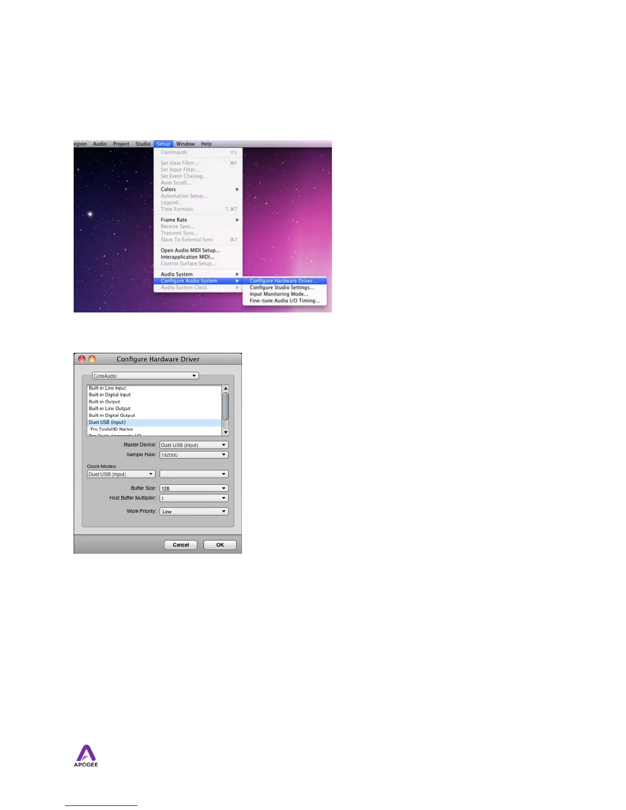 Select Duet in the device list. Set Buffer Size to 128.