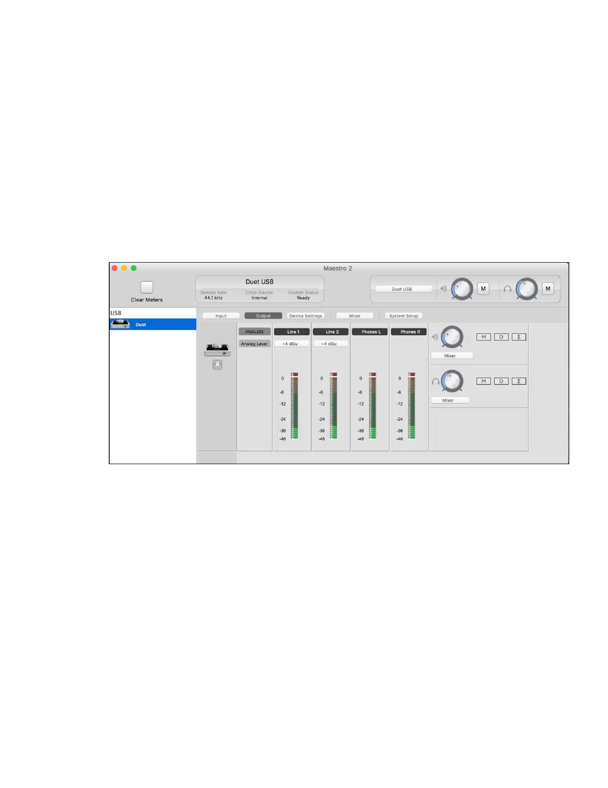2. Go to Output Tab in Maestro and choose Mixer under Speaker