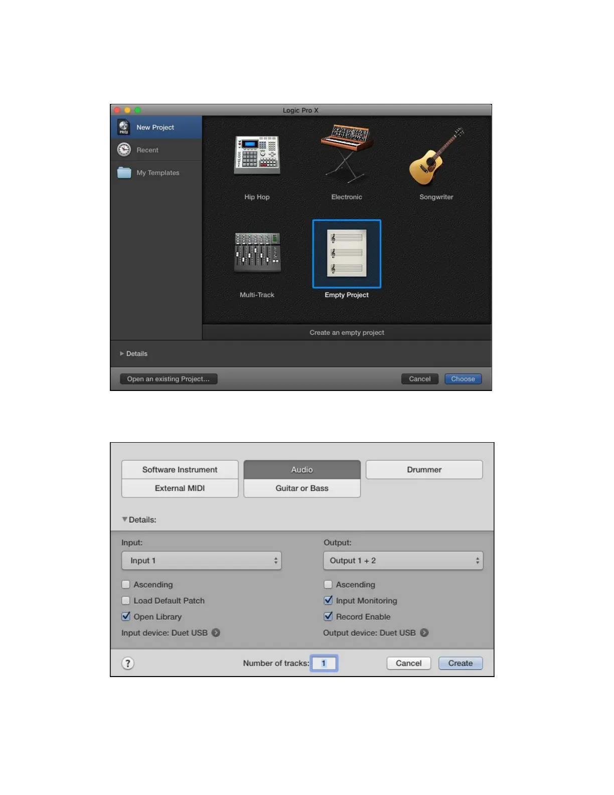selections in the New Tracks dialog box and click Create: